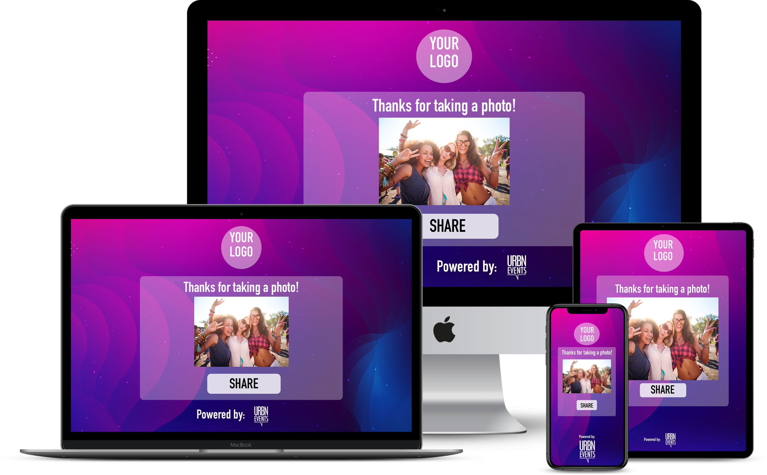 OUR VIRTUAL PHOTO BOOTH HAS ENDLESS OPTIONS FOR CUSTOMIZATIONS INCLUDING LOGOS, BRAND COLOR MATCHING, as WELL AS NUMEROUS OPPORTUNITIES FOR SPONSORSHIP BRANDING.